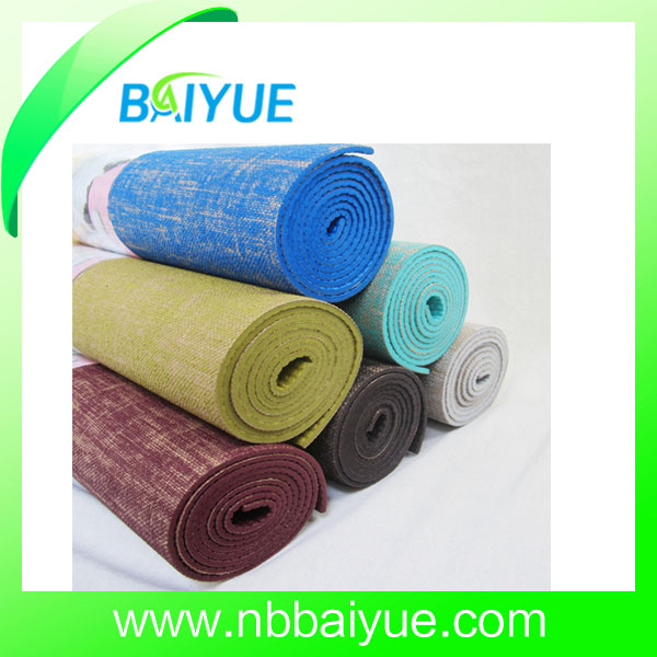 BAIYUE Jute Yoga Mat provide more natural and high quality surface,excellent grip for yoga. It is made from Natural Jute with Eco PVC and has excellent Anti-slip surface.A highly versatile fiber, jute combines breath ability with high tensile strength, making our jute mat the perfect balance of durability and comfort. This mat also features a non-slip backing of PER material that contains no toxic or heavy metals and is static free and resistant to mildew.