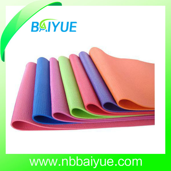 PVC Yoga mat, made of PVC close-cell foam, durable, keeps cold and dampness always from body and water-proof; designed with anti-slip characteristic, super elasticity, reduce pain and ache caused during exercising on the floor, easy to carry to anywhere you want, easy to clean with water; ideal for yoga exercise, sun bathing, hiking and gym.