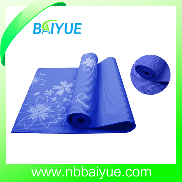 PVC Yoga mat, made of PVC close-cell foam, durable, keeps cold and dampness always from body and water-proof; designed with anti-slip characteristic, super elasticity, reduce pain and ache caused during exercising on the floor, easy to carry to anywhere you want, easy to clean with water; ideal for yoga exercise, sun bathing, hiking and gym.