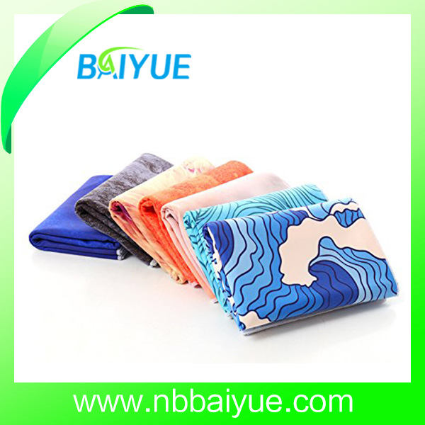 BAIYUE yoga mat towel is the best selling to the USA and European market.It is could custom different pattern and colors as requirement.Mat-length towels lie atop your mat and soak up perspiration to reduce slipping and sliding while you work your poses. Their textured weave strikes the perfect balance between slippery and soft to the touch.